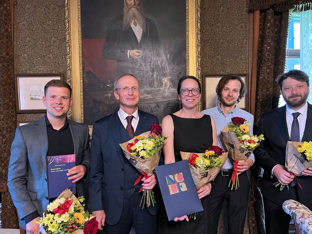Kniha Nanovlákna získala Cenu Josefa Hlávky, Tým autorů: zprava Jan Valtera, Michal Trčka, Eva Kuželová Košťáková, David Lukáš a David Svoboda.